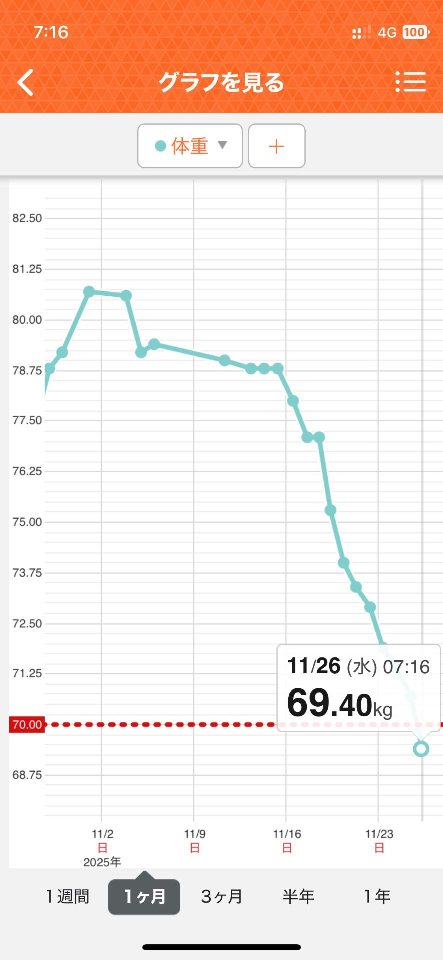 2年間必死に目指していた目標体重70kg切り!達成!!